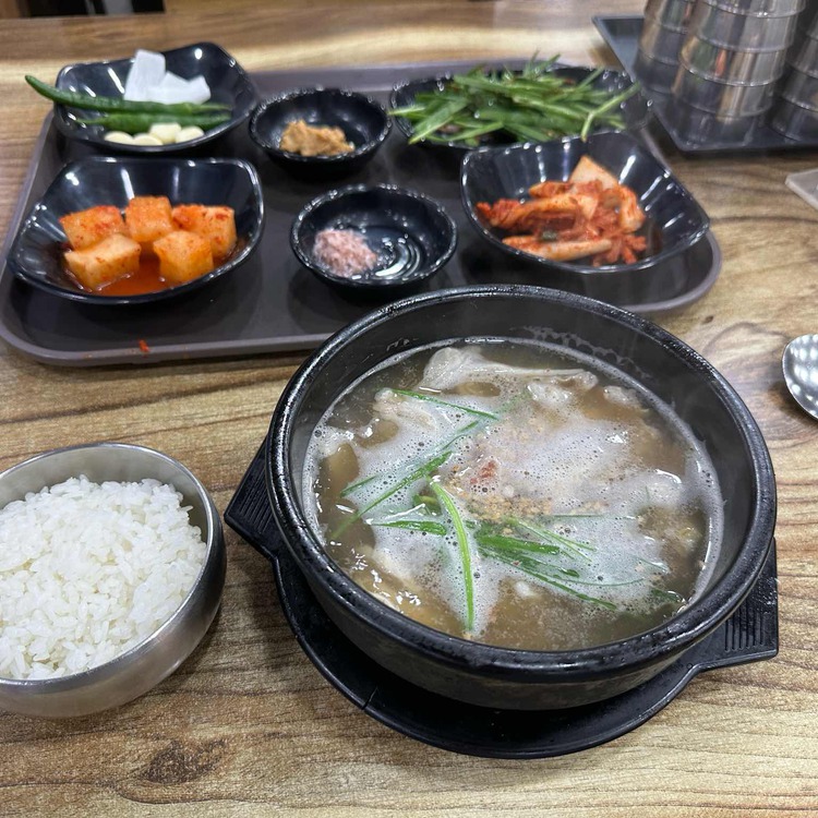 It's more than just a simple dish. Chefs spend hours boiling pork to create a nutritious broth. After removing the bones, they add rice wine, sesame oil, and soy sauce. It's then poured over steamed rice and served with various side dishes.