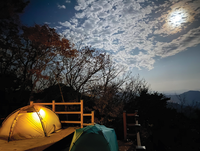 ✔ 기온 변화 체크: 밤에는 기온이 급격히 떨어질 수 있으므로 따뜻한 이불과 침낭 준비!